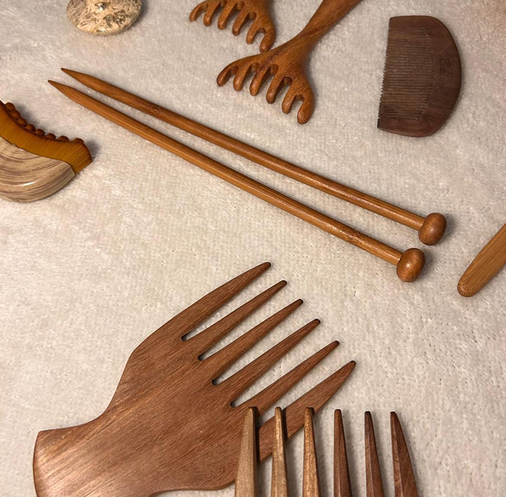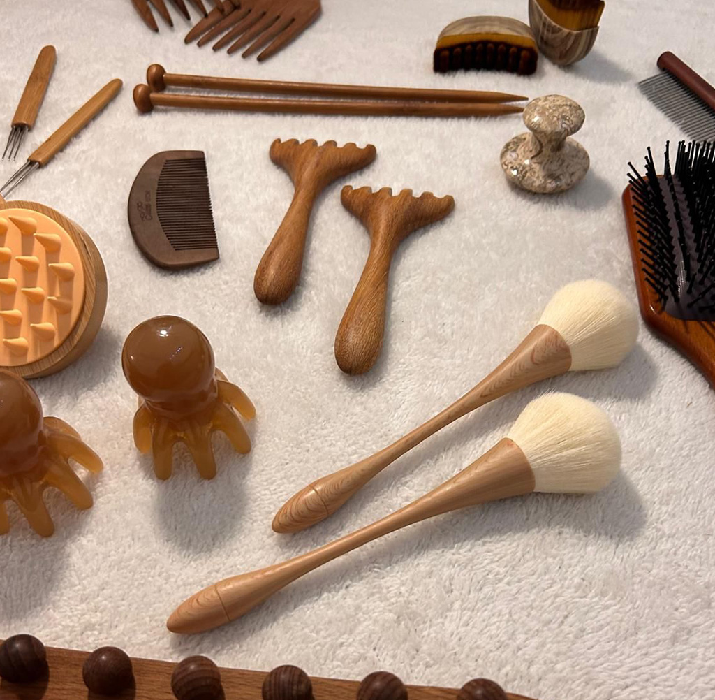 We have a variety of tools, including: bamboo head massage sticks, soft brushes, jade stone rollers, etc.